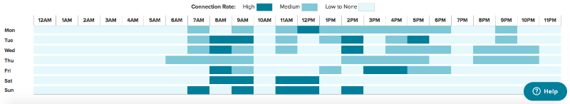 Other people are just incredibly regimented. Based on over 1400 emails sent by this old customer, it's clear that 2PM is when he clears his inbox. Again, 7 days a week! I didn't ask him if he was clearing his inbox instead of catching up on ESPN from the bathroom, but at least I do know when to deliver my email to hit the top of his inbox when he's paying attention and most likely to respond.